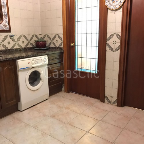 La vivienda tiene dos puertas de entradas con su correspondiente hall. Según pasamos por la entrada de servicio nos encontramos un recibidor amplio que nos lleva a una estancia donde nos encontramos un especio para la lavadora (que se queda) zona de planchado etc. y una habitación y un baño completo.(Esta especial distribucción facilitaría si se quisiese una partición o la creación de un pequeño apartamento). Todo a modo de office cerrado por una puerta con una preciosa cristalera de colores.Este hall también nos lleva a una cocina amplia que queda equipada y amueblada (frigorífico, cocina..etc. con tendedero cerrado muy espacioso y luminoso , dando a una bonitas vistas verdes.