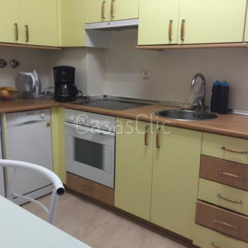 La cocina esta totalmente equipada con muebles y electrodomésticos, y en ella nos encontramos un tendedero que a su vez nos sirve de guarda útiles.