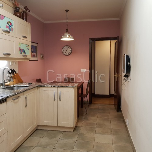 Piso en urbanización, en zona residencial, con garaje directo, cuya distribución indicamos. Entramos en hall, seguido nos encontramos con un salón-comedor muy agradable con acceso a una soleada terraza con vistas a la zona verde de su alrededor. Cocina amplia y completamente equipada con una zona separada para colgar la ropa y para plancha.
