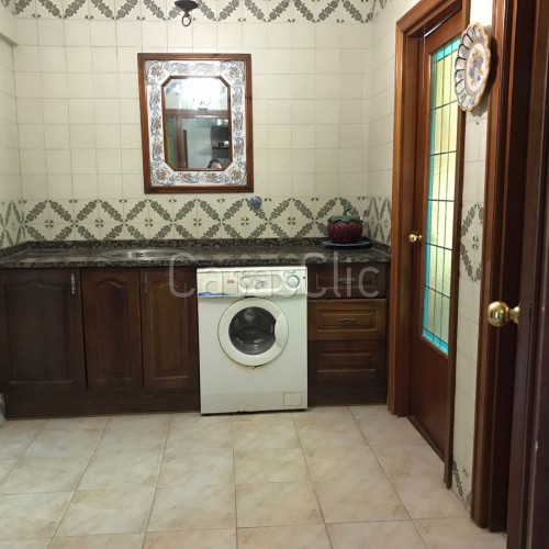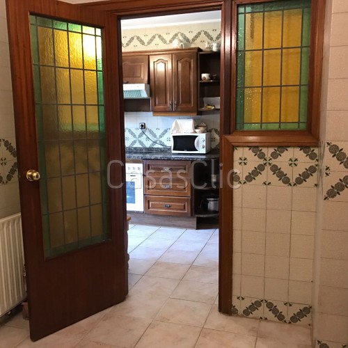 La vivienda tiene dos puertas de entradas con su correspondiente hall. Según pasamos por la entrada de servicio nos encontramos un recibidor amplio que nos lleva a una estancia donde nos encontramos un especio para la lavadora (que se queda) zona de planchado etc. y una habitación y un baño completo.(Esta especial distribucción facilitaría si se quisiese una partición o la creación de un pequeño apartamento). Todo a modo de office cerrado por una puerta con una preciosa cristalera de colores.Este hall también nos lleva a una cocina amplia que queda equipada y amueblada (frigorífico, cocina..etc. con tendedero cerrado muy espacioso y luminoso , dando a una bonitas vistas verdes.